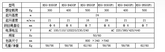 HSG-B500F1推式微型電動(dòng)葫蘆參數(shù)表: